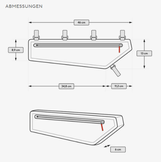 Eine längere Version der beliebten Rahmentasche für größere Rahmen und noch mehr Platz.